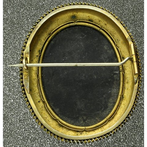 Antik dansk broche af forgyldt metal m. blomstermosaik