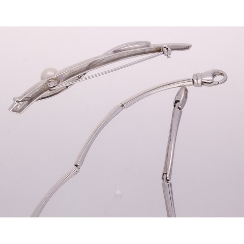 Smykkesæt af sølv, fattet med kulturperler og sten.