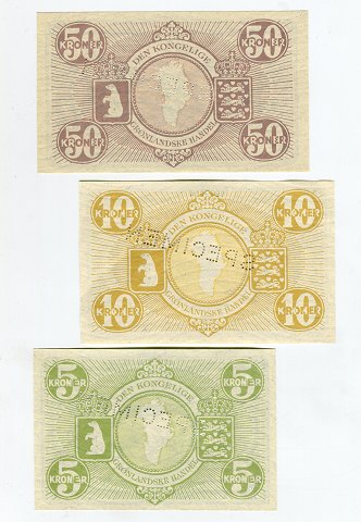 Anvisning 50 kr - Sieg 71, Pick 20, anvisning 10 kr - sieg 70, Pick 19, anvisning 5 kr Sieg 69, Pick 18 - alle uden årstal (1953)