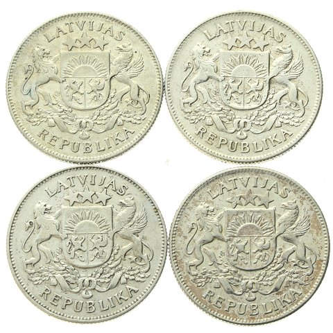 Letland - 2 lati 1925 - sølv - 4 mønter - KM# 8