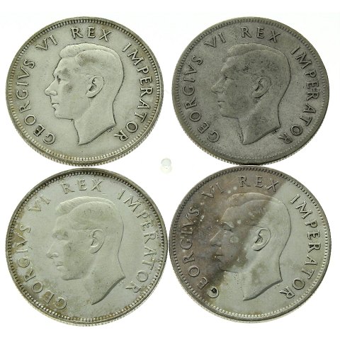Sydafrika - 2.5 shillings 1937, 1938, 1940, 1942 - 4 sølvmønter