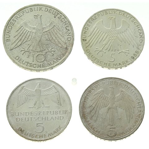 Tyskland - 5-10 DM 1968-1972 - 4 sølvmønter