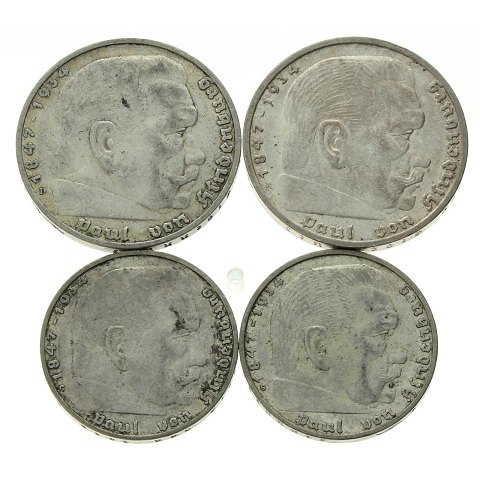 Tyskland - 2 + 5 reichsmark - 1936-39 - 4 sølvmønter
