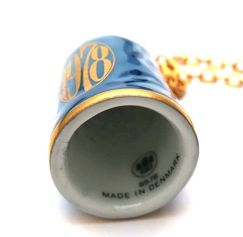 Bing & Grøndahl fingerbøl af porcelæn med halskæde af metal.