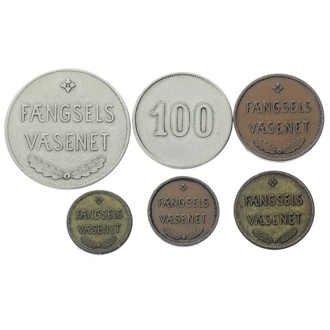 200 øre, 100 øre, 25 øre, 10 øre, 2 øre og 1 øre.