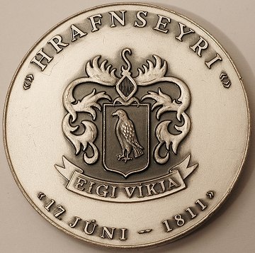 Islandsk medaille af sølv, præget i anledning af 100 året for Jón Sigurdssons død 1879. Sigurdsson var leder af den islandske uafhængighedsbevægelse i det 19. århundrede. Ø. 54 mm.