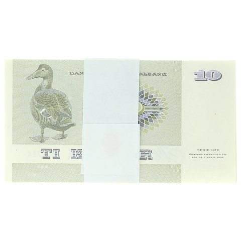 10 stk. sedler ucirkulerede 10 kr. 1977 B7 i nr. rækkefølge