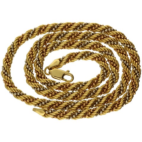 Halskæde af 18 kt - af 3 farvet guld - længde 45,7 cm - vægt 18 g