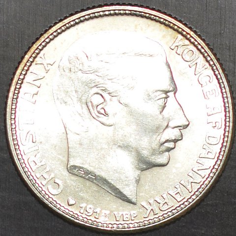 Christian X - 1 krone - 1915 - Sieg 2, H 9 - Sølv