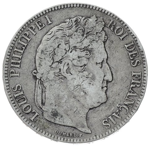 Frankrig - 5 Francs 1843 - W - Louis-Philippe I - sølv - KM#749.13