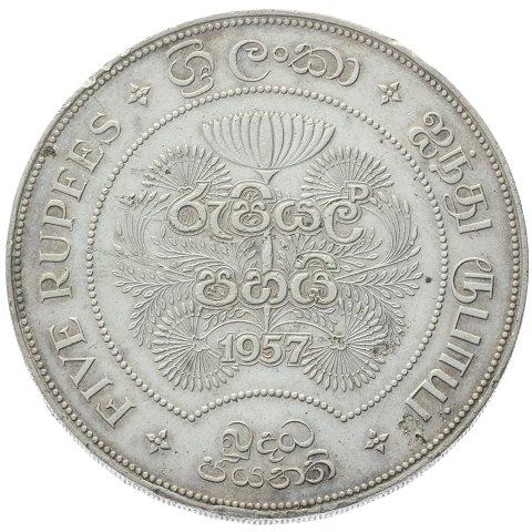 Sri Lanka - 5 rupees 1957 - Buddha - sølv - KM# 126