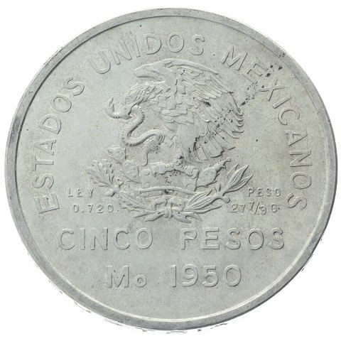 Mexico - 5 pesos 1950 - Sydlige jernbane - sølv - KM# 466