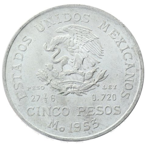 Mexico - 5 Pesos 1953 - Hundredeårsdag for Hidalgos fødsel - sølv - KM# 468