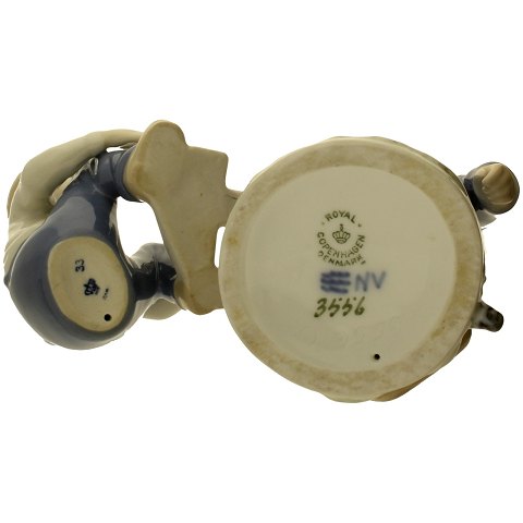 Royal Copenhagen figuren er 1. sortering, dog fremstår den med en større reparation tværs over maven.
