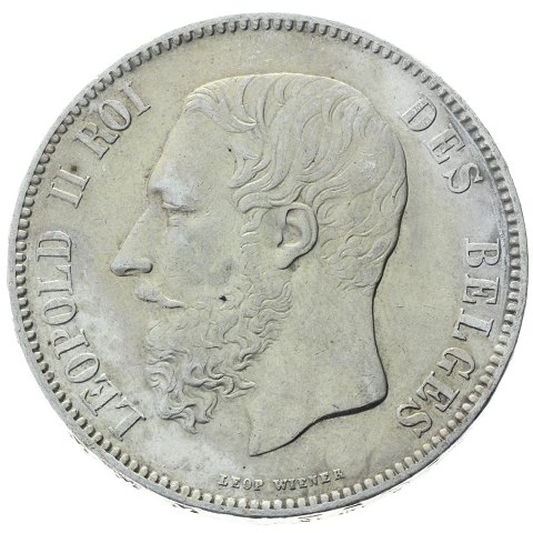 Belgien - 5 Francs 1870 - A - Léopold II - sølv - KM # 24
