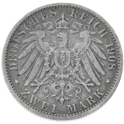 Tyskland - Preussen - 2 Mark 1908 - A - Wilhelm II - sølv - KM # 522