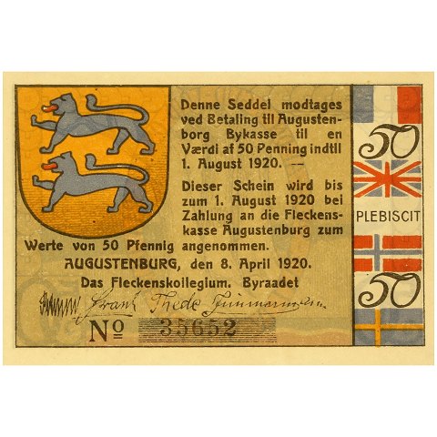 Augustenborg Kommune - Augustenburg - 50pf. - 1920 - Sieg 4 - ucirkuleret