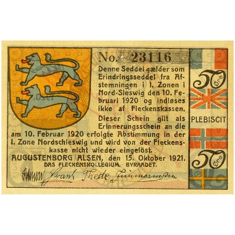 Augustenborg Kommune - Augustenburg - 50 øre - 1921 - Sieg 6 - ucirkuleret