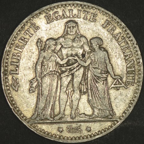 Frankrig - 5 Francs - 1876 - Sølv - F# 334, Gad# 744, KM# 820