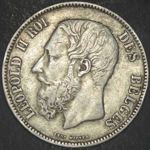 Belgien - 5 Francs - 1870 - Leopold II - Sølv
