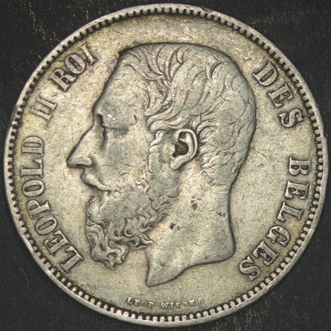 Belgien - 5 Francs - 1875 - Leopold II - Sølv