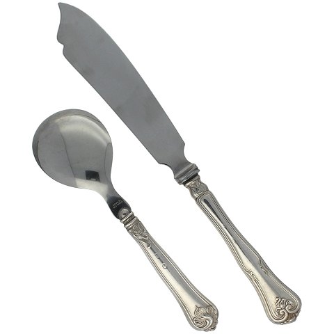 Saksisk og Bauta - lagkagekniv og serveringsske med skaft af sølv(2)