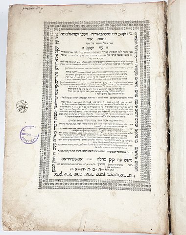 Interessant ukendt jødisk bog. Nogle blyantindskrifter. Muligvis trykt i Berlin, 1729. ca. 200 sider. Dårlig tilstand, skal repareres. 38*29cm