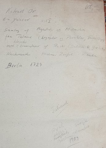 Interessant ukendt jødisk bog. Nogle blyantindskrifter. Muligvis trykt i Berlin, 1729. ca. 200 sider. Dårlig tilstand, skal repareres. 38*29cm