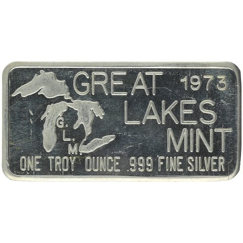 Sølvbarre, 1 ounce finsølv - Great Lakes Mint, 1973.