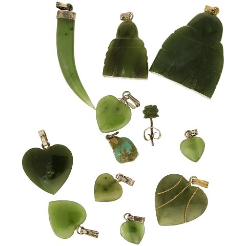 Samling jade og nefrit samt et vedhæng med turkis(12)