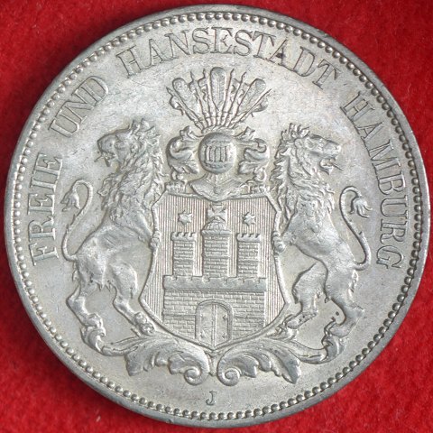 Tyskland - 5 Mark - 1907 J - Hamburg - Sølv - KM# 610