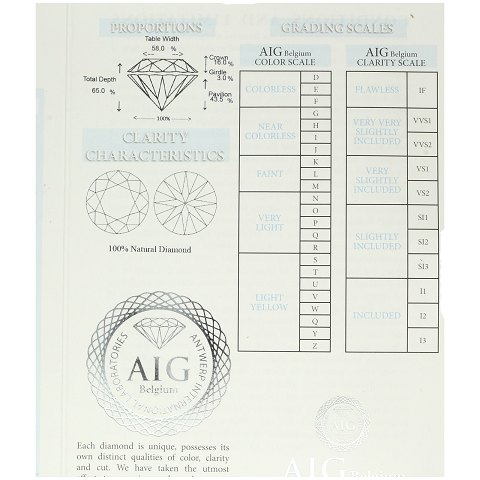 Rund naturlig brillant, 0,54ct, AIG-certificeret.