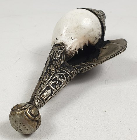 Tibetansk ritualhorn - med sølvdekoration - L. 15.5cm