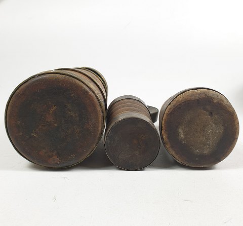 Sæt med 3 nepalesisk træbeholdere - 1900'erne