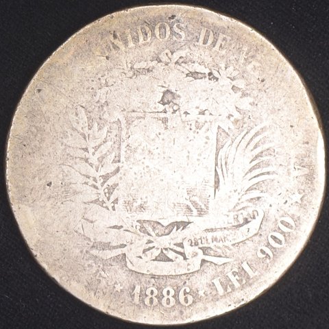 Venezuela - 5 Bolivares - 1886 - Simon Bolivar - Sølv - Y# 24.1