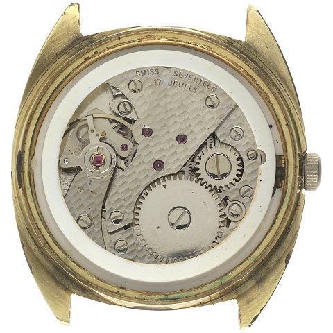 Uret har en 34mm cushion-formet kasse af doublé. Uret har en flot glossy sølv-farvet skive med gyldne batton-indeks samt datovindue. Uret er udstyret med et mekanisk værk med manuelt optræk.