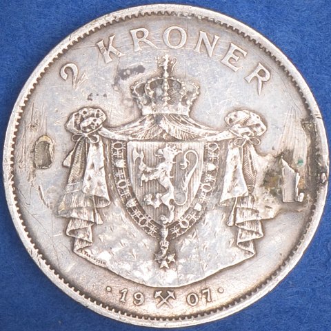 Norge - 2 kroner 1907 - Norges uafhængighed gjennemført 1905 - Haakon VII - Sølv - H 70