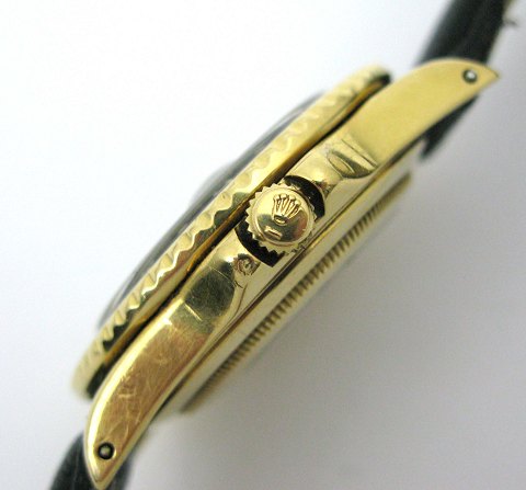 Rolex herrearmbåndsur, model GMT master II , ref.nr. 16758, i urkasse af 18 kt. guld, sort skive med streg- og punktindeks, datoangivelse ved 3" position, justerbar lynette med safirglas, automatisk urværk. Urkasse diameter 40 mm.