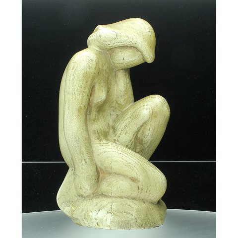 Kurt Frindby. Reproduceret fra en model af den danske kunstner Jacob Eriksen. 'I Tanker', skulptur af træ, label i bunden, H. 22 cm.