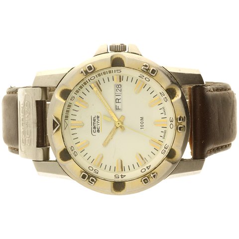 Uret har en 42mm kasse af stål, kassen er monteret på en brun læderrem med originalt Camel Active c-spænde. Uret har en glossy hvid skive med stregindeks samt dag-og-dato vindue. Uret er udstyret med et quartz-værk.