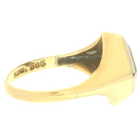 Ring af guld 14kt. fattet med grøn sten
