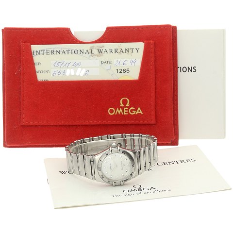Uret har en 25,5mm kasse af stål, kassen er monteret på den originale Omega Constellation lænke som ligeledes er udført i stål. Uret har en flot lys perlemor skive med pyramide-formede indeks. Uret er udstyret med et Omega cal. 1456 som er et quartz-værk.