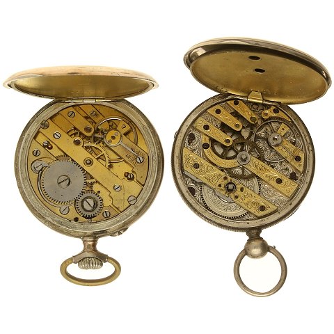 Et af lommeurene har en kasse af sølv samt en defekt skive, det andet er med defekt værk og uden glas.