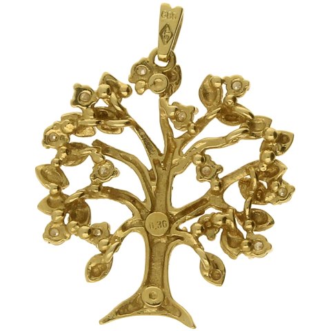 Vedhæng af guld 14kt i form af træ fattet med brillanter ca. 0,36ct.
