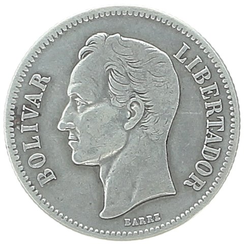 Venezuela - 1 Bolívar - 1922 - Sølv - Smal dato - Y# 22