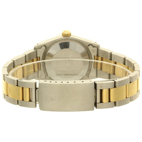 Midsizeur fra Rolex, model Oyster Perpetual Datejust, ref.nr.: 68273, i kasse og m. oysterlænke af 18 kt. guld og stål, champagnefarvet skive m. stregindeks, datoangivelse ved 3" position, guldlynette m. riflet kant, safirglas, automatisk urværk. Fra 1987. Ø. 30 mm.