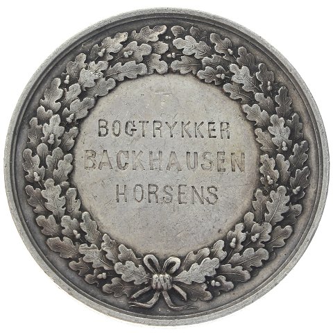Givet til bogtrykker Andreas Backhausen fra Horsens. 45mm, 49.7 gram