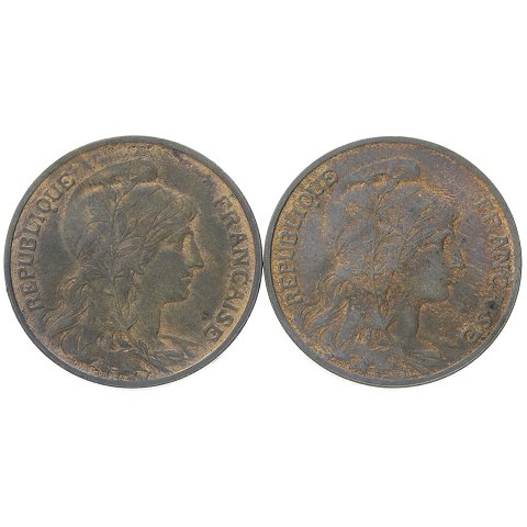 Frankrig - 10 centimes 1900 og 1910 - KM# 843 - UNC - 2 mønter