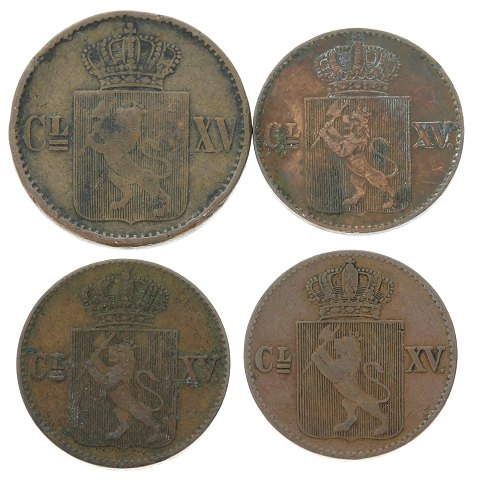 Norge - ½ og 1 Skilling - 1867/70 - Carl XV - KM# 329 og 335 - 4 mønter