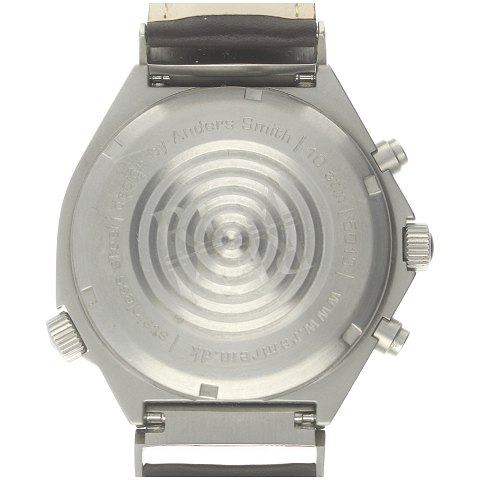 Uret har en 48mm kasse af stål, kassen er monteret på en mørk brun læderrem. Uret har en sølvfarvet skive med punktindeks, arabertal samt datovindue, derudover byder skiven på sub-seconds og en sub-dial som tæller kronografens minutter. Uret er udstyret med et quartz-værk med kronograf funktion.